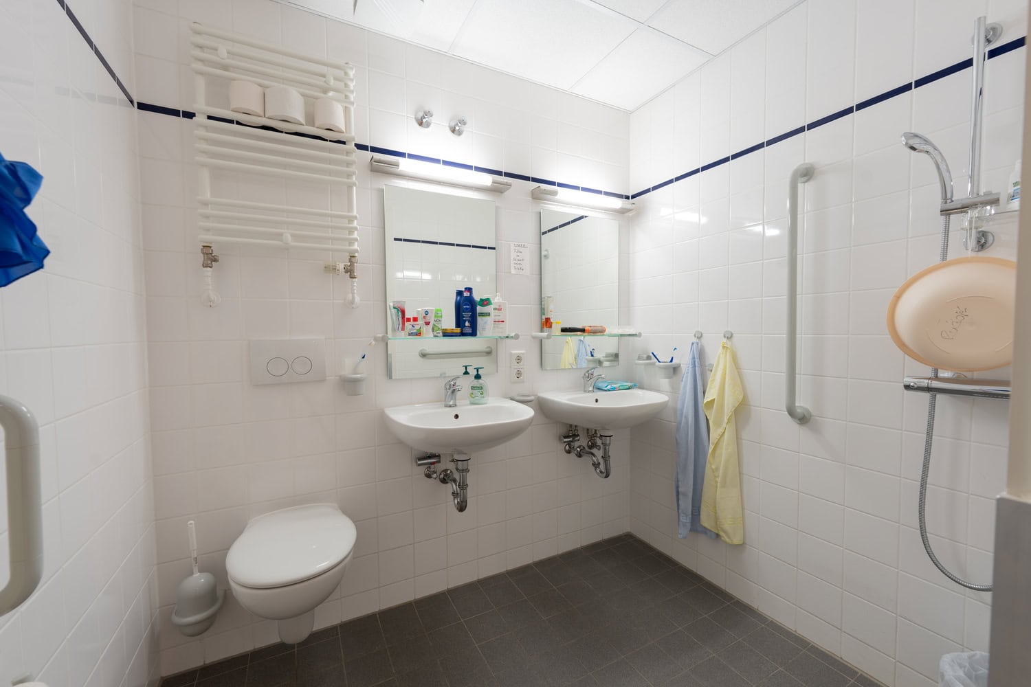 Zudem stehen unseren Bewohnerinnen und Bewohnern ein gemütlicher Gemeinschaftsraum mit Bibliothek, eine großzügige Gartenanlage, ein Speisesaal mit Sitzecken sowie Gästezimmer für Besuch zur Verfügung – ebenso wie Wohnraum für Mitarbeitende.